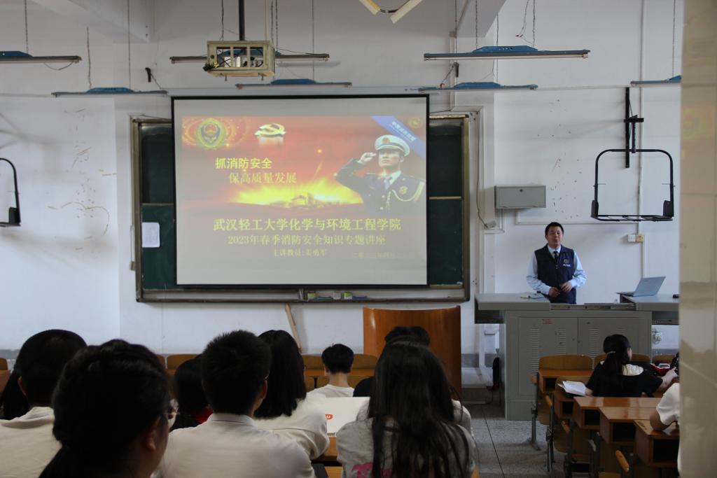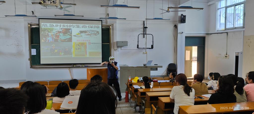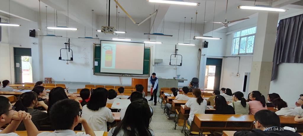 4月20日下午,beat365官网中文版本在2楼电教室组织师生参加实验室安全讲座,讲座由湖北省楚消安消防知识宣传中心教员姜勇军主讲。姜教员认真剖析了事故的原因,讲解了如何应对和消除安全事故,并现场讲解了灭火器的使用、灭火器的种类以及防毒面具的正确佩戴方式等安全消防知识,并现场答疑解惑,为师生带来了一场别开生面的安全知识讲座。