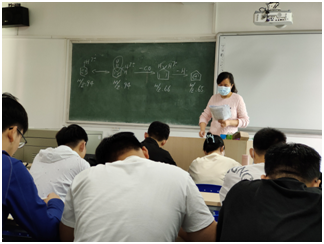 2022年4月6 日上午在02-506教室材料化学系全体教师参加了高新蕾老师的《现代材料分析测试技术》课程的观摩活动。高老师讲授了质谱分析相关内容,在教学过程中融入课程思政相关内容,如辩证唯物主义思想,严谨求实的科学态度及批判创新的思维方式。同学们认真听讲并和老师良好互动。