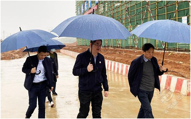 在人福药辅迁扩建项目施工现场,汪海波一行认真听取了企业负责人项目整体规划、项目各单体建筑、施工进度等工作介绍。(撰稿人:王春生 审稿人:周明砚)