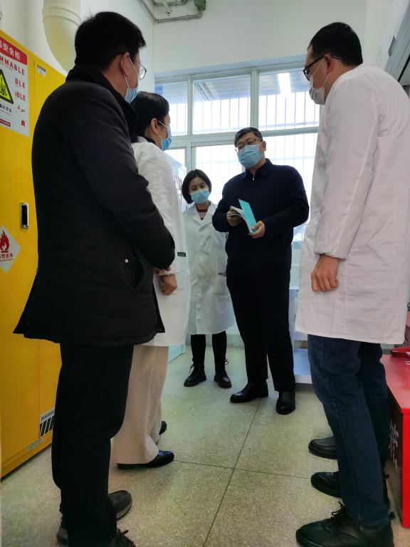 调研中,王立兵一行还深入生化大楼,实地查看实验室,认真听取工作人员介绍,仔细查看各类记录台账,不时提出指导性意见。(撰稿人:胡艾平 审稿人:周明砚)