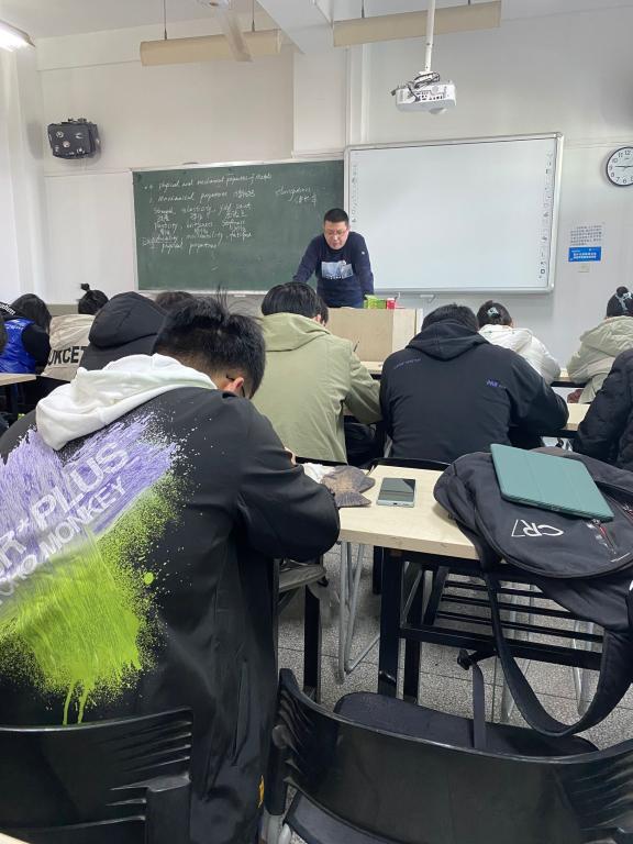 《材料概论(双语)》是材料化学专业的一门专业选修课程,选用教材为全英文教材,也是本专业的一门专业英语课程,通过该课程的学习使材料化学专业员工掌握一定的专业词汇并能够阅读一定的专业英文文献和书籍。观摩课上主要介绍了Physical and mechanical properties of Metals,包括Mechanical property和Physical property等内容。课程中涉及到的专业英文词汇,柴波老师均在黑板上进行认真板书,并对英文课文进行认真阅读和翻译。通过这种模式的教学,员工能够掌握一定量的专业英文词汇和专业外语的表达,为他们今后的专业学习打下基础。