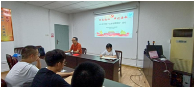 首先,支部书记闫俊涛同志向全体党员传达了本次主题党日活动的精神及学习要点,通过观看习近平总书记在庆祝中国共产党成立100周年大会上的讲话视频,带领大家学习了“七一”重要讲话精神,这是立足中国共产党百年华诞的重大时刻和“两个一百年”历史交汇的关键节点,回望光辉历史、擘画光明未来,是一篇马克思主义纲领性文献,是新时代中国共产党人不忘初心、牢记使命的政治宣言,是我们党团结带领人民以史为鉴、开创未来的行动指南。研究生党员不仅要学习,而且要行动,要牢记初心使命,坚定理想信念,践行党的宗旨,永远保持同人民群众的血肉联系,始终同人民想在一起、干在一起、风雨同舟、同甘共苦,继续为实现人民对美好生活的向往不懈努力,努力为党和人民争取更大光荣!