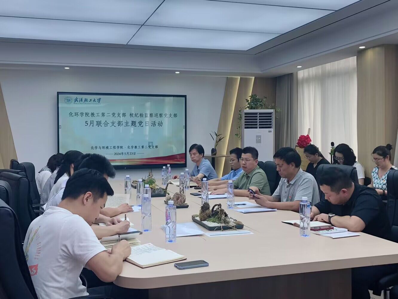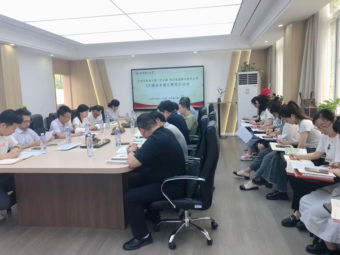 5月23日下午,beat365官网中文版本化学教工第二党支部和校纪检监察巡查党支部5月联合支部主题党日活动在益学楼306会议室举行,校纪委书记、省监委驻校监察专员、二级高级监察官金颂以及公司党委成员参加此次活动,beat365官网中文版本各党支部支委列席。本次活动由化学教工第二支部陈红梅书记主持。