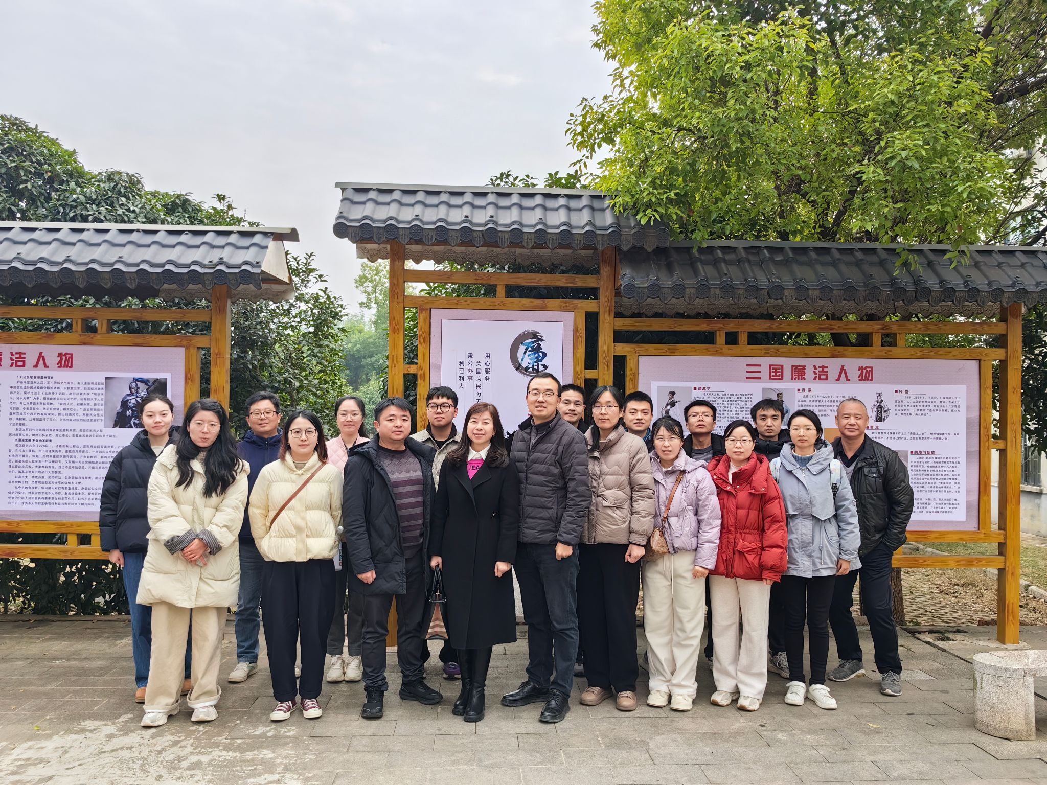 大江东去,浪淘尽,千古风流人物。活动第二站来到三国赤壁古战场景区,该景区是国家重点文物保护单位、湖北省爱国主义教育基地、湖北省文化产业示范基地。三国赤壁古战场是中国古代“以少胜多、以弱胜强”七大战役中唯一尚存原貌的古战场遗址。穿过古朴的大门后,教职工沿线依次浏览庞统阅读兵书的金鸾山、诸葛亮巧借东风的南屏山、孙刘联军的前沿指挥阵赤壁山,追寻历史足迹,领略三国文化。在三国雕塑园中,塑像惟妙惟肖,仿佛置身桃园结义的情景中。登临拜风台,重温“草船借箭”的故事。赤壁摩崖石刻则位于赤壁山悬崖深处,相传赤壁战后,周瑜挥剑在石壁上刻下了“赤壁”两个遒劲的大字。