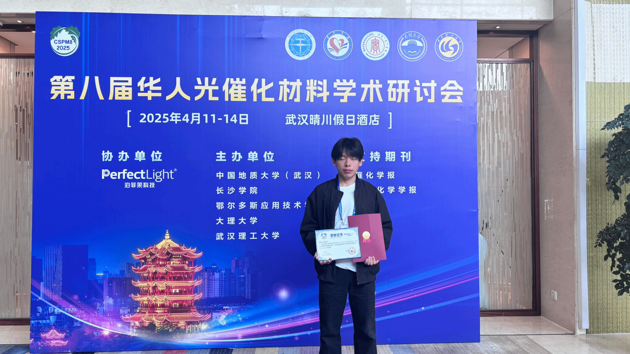 2025年第八届华人光催化材料学术研讨会(CSPM8)于2025年4月11–14日在武汉晴川假日酒店举行。本次会议由中国地质大学(武汉),长沙公司,鄂尔多斯应用技术公司,大理大学和武汉理工大学联合主办,会议内容涵盖大会报告、主题报告、邀请报告、口头报告、墙报展示以及光催化产品展览,并设立优秀墙报奖。beat365官网中文版本师生团队凭借创新科研成果斩获“泊菲莱优秀墙报奖”殊荣。
