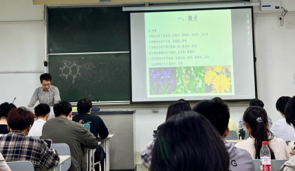 在讲解黄酮类化合物的保健功能时,张老师结合生活场景,指导员工辨识含黄酮类成分的常见食物,并讨论如何通过专业知识服务社会健康需求。这种将天然产物研究与公民健康素养培养相结合的设计,得到听课教师"如盐入水,润物无声"的高度评价。此外,该课堂注重知识迁移能力培养,通过板书推演和案例分析,帮助员工建立天然产物研究的系统性思维,激发了深度学习的兴趣。