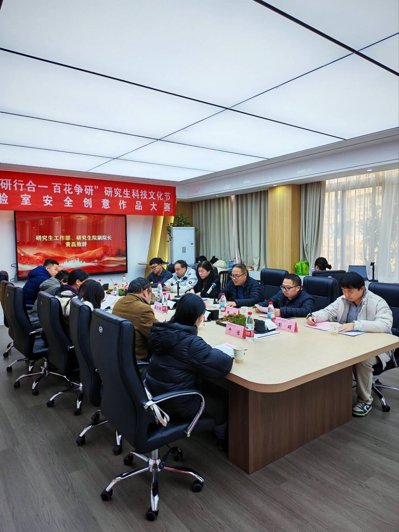 12月25日下午,公司第五届“研行合一 百花争研”研究生科技文化节暨实验室安全创意作品大赛在益学楼306会议室成功举办。本次活动以“AI赋能安全教育,创意助力规范实验”为主题,研究生工作部、研究生院副经理黄磊、资产与实验室管理处副处长张双德、公司党委书记于雪,相关公司实验中心主任、研究生辅导员作为评委和嘉宾参加活动。