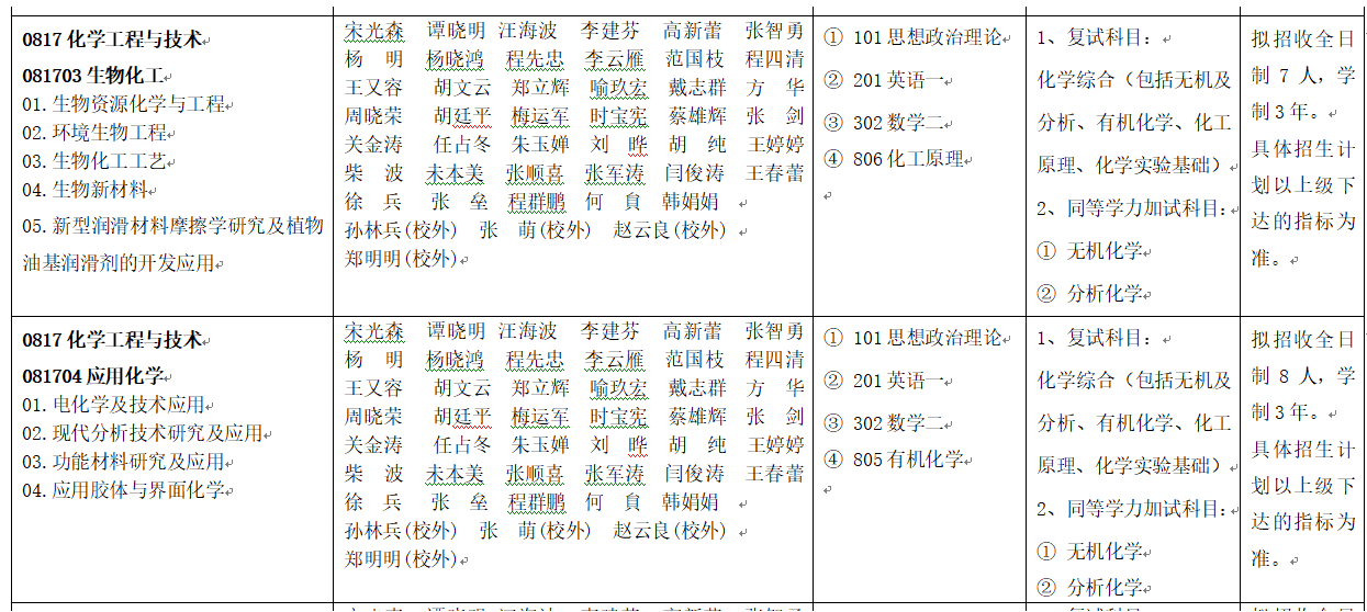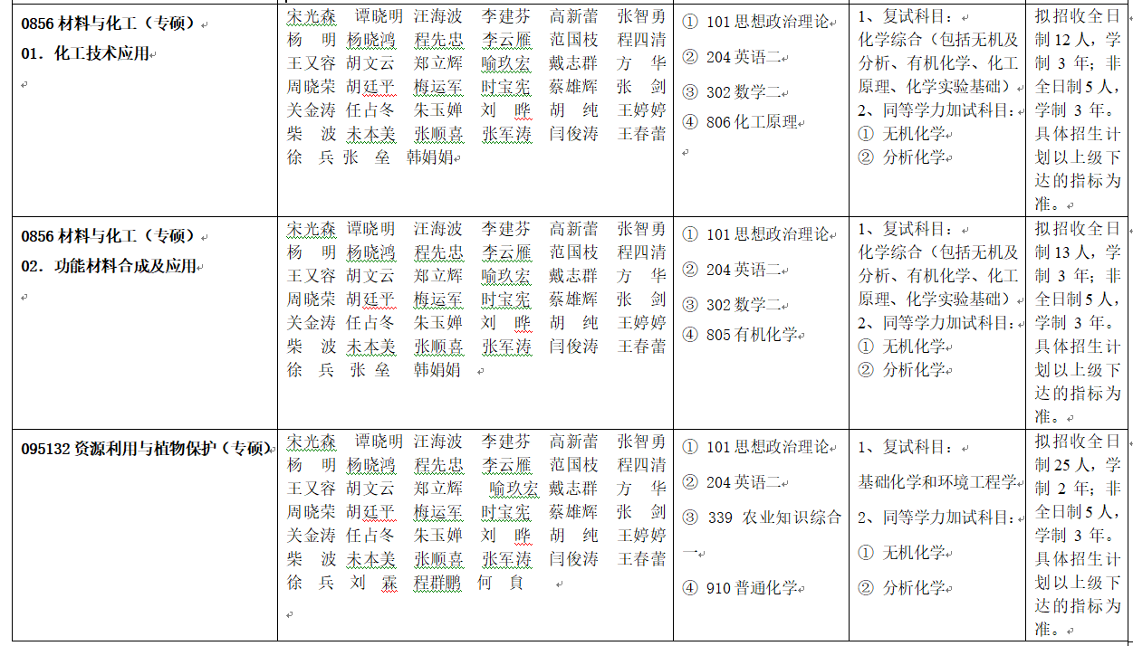 材料与化工(0856)本学科下设化工技术应用和功能材料合成及应用2个主要方向。涵盖农副资源化学工程、生物材料化学工程、新能源材料化学工程、功能材料化学工程等优势研究方向。该学科紧密围绕新能源和新材料产业,主要为材料与化工领域的企事业单位培养综合素养高、工程实践能力强的复合型高层次人才。