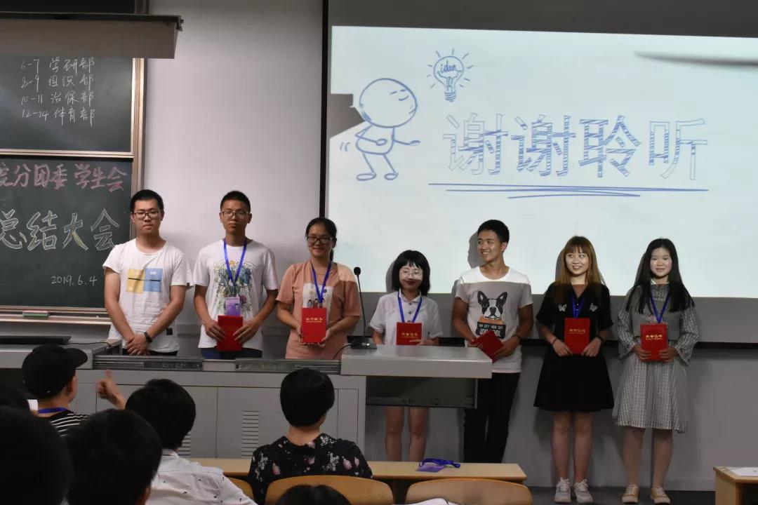 本次大会分为三个部分,首先是青年志愿者协会和员工会各个部门的工作总结,他们分别对自己的部门成员,工作及活动等方面进行了详细的介绍,展示了他们取得的成就,收获和不足,并对下学期的工作进行了展望。第二部分则是颁奖环节,分别颁发了青协优秀部长,员工会优秀部长,青协优秀干事和员工会优秀干事四个奖项。在员工干部的掌声下,由老师和主席团成员为他们进行了颁奖。第三部分是主席团成员和老师对本年度员工工作进行总结,他们表示了对即将离开的不舍,也对自己这几年来的工作进行了总结,分享了员工工作的经验,并对接下来新的员工会表示期待。最后,王尚玉书记进行了总结性讲话,她对此次大会的圆满举行表达了高度赞许,也对员工会工作给予了充分的肯定,同时阐述了员工会的地位和作用,并对员工会的发展提出了殷切希望。