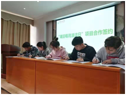 会议上,绿色江城负责人柯志强、民间河长李晓濛老师等分别分享了长江(武汉段)、汉江(武汉段)等十五条主要河流实地调查报告,讲述了参与绿色江城活动的经历和感想。会议对2018年的工作进行了总结,同时对年度优秀环保志愿者、高校十佳合作伙伴等进行了表彰。最后,为了推进“湖泊每月清洁日”项目的可持续发展,化环青协等多所高校环保社团、志愿者协会与绿色江城进行了合作签约,让更多高校青年学子参与到保护江河湖泊生态环境的实际行动中来。
