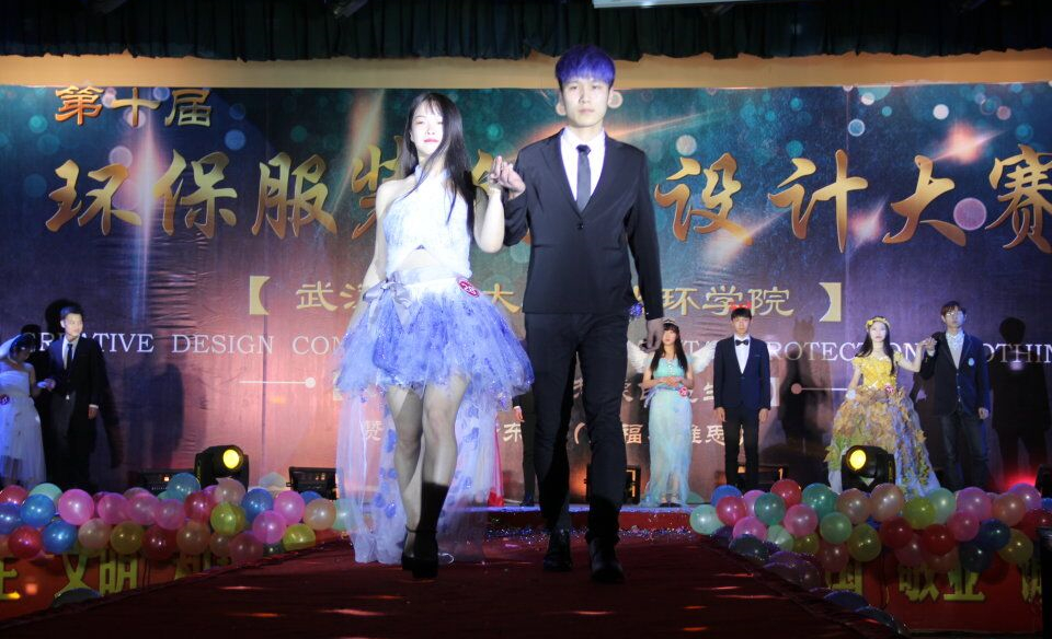 比赛在Will乐队的开场曲《男孩》中拉开帷幕,全场气氛瞬间被点燃。时尚搭配组选手首先上场,动感的音乐、炫酷的搭配、轻盈的步伐,选手们将塑料袋、废纸、军训服裁剪,尽显时尚风采;黑色幽默组选手以简单的黑色系,用纸板、塑料袋等,装扮成蝙蝠侠、佐罗、侠客等造型。万花筒组别具韵味、个性鲜明,既有塑料袋与纸板制成的环保学士服,又有旧床单与蚊帐制成的唯美汉服。清新简约组的服装简洁灵秀,简约而不简单,低调而不失高雅。灯泡与蚊帐、废纸搭配而成的纱裙令人眼前一亮。Bling Bling Relax组自带闪光效果,反光布、光盘等在舞台灯光的照射下映出绚烂的光。白色恋人组身着婚纱的选手们在男伴的陪伴下向观众们展示这甜甜的恋爱风,很好地运用了落叶、花瓣等元素诠释环保的主题。除了参赛选手们带来的T台走秀,比赛现场还上演了舞蹈《因为从有到无》、《加冕为王》,歌曲《一个像夏天一个像秋天》、《不该》以及幽默哑剧《电影院的故事》等丰富多彩的节目表演,为现场师生带来一场视听盛宴。