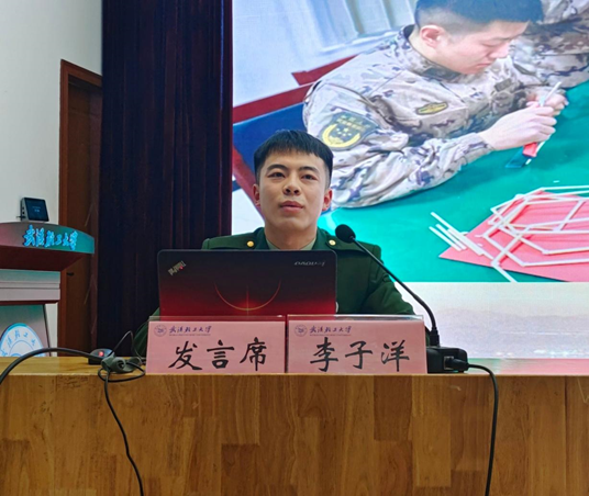 随后,李子洋同学分享了参军入伍的经验。他从“为什么参军入伍”、“军旅活动”以及“个人感悟”三个方面深刻指出参军入伍对国家,对民族的重要性,呼吁广大学子征兵入伍,保家卫国。引起台下听众一片掌声。
