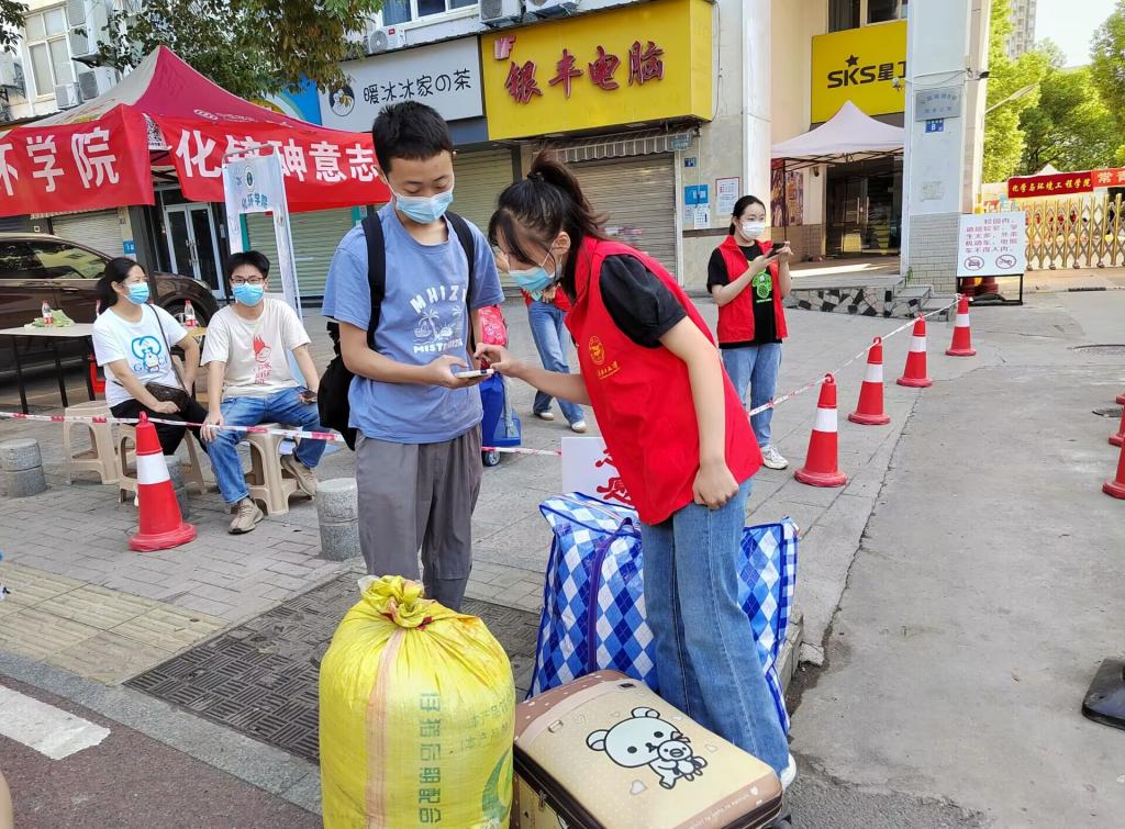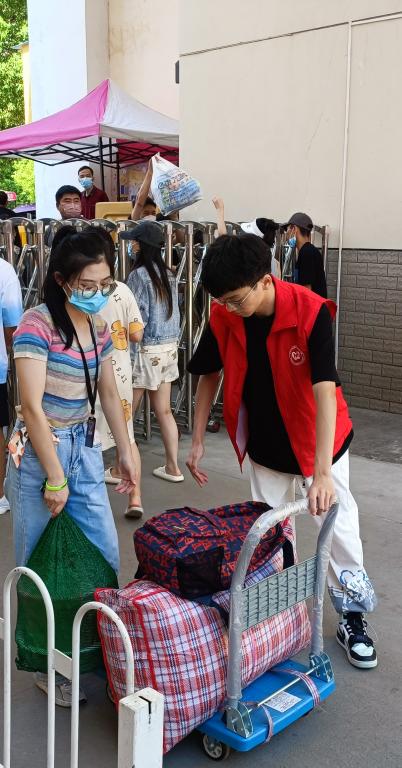 迎新当天从各火车站点新生的接送,到公寓门口行李的转运及消毒,再到迎新处个人信息的核实登记,到最后新生寝室的交接等环节都离不开身着“beat365官网中文版本志愿者”红马甲的身影。志愿者们用热情洋溢的笑脸、沉稳有效的行动、耐心负责的态度服务新生,通过解答新生学业与生活上的疑惑,分享自己老员工涯的经历,宣传安全防护知识来消解新生入学的陌生感和担心,帮助他们更快更好地融入beat365官网中文版本这个温暖有爱的大家庭。
