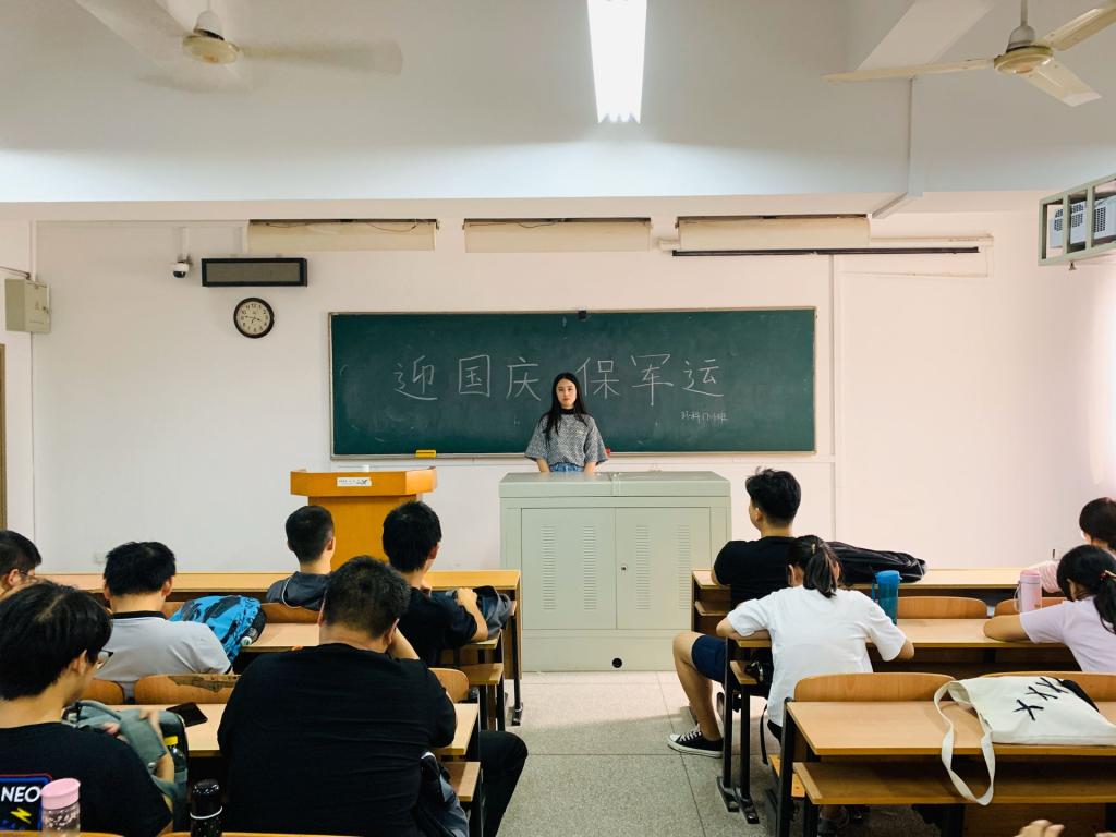 会上,班长们强调了假期安全问题,提醒同学们注意寝室、交通及网络安全。在祖国成立70周年及武汉市军运会将至之时,注重网上言论,引导同学发布积极健康的内容及信息。另外,各班邀请班主任老师对同学们进行假期学习规划的指导,营造高效愉悦的假期氛围。与此同时,2017级各班开展"为祖国献礼"送祝福活动,同学们积极为祖国发声祝福。班会紧紧围绕迎大庆、保军运、促平安展开,为即将到来的小长假设置了一道安全屏障。