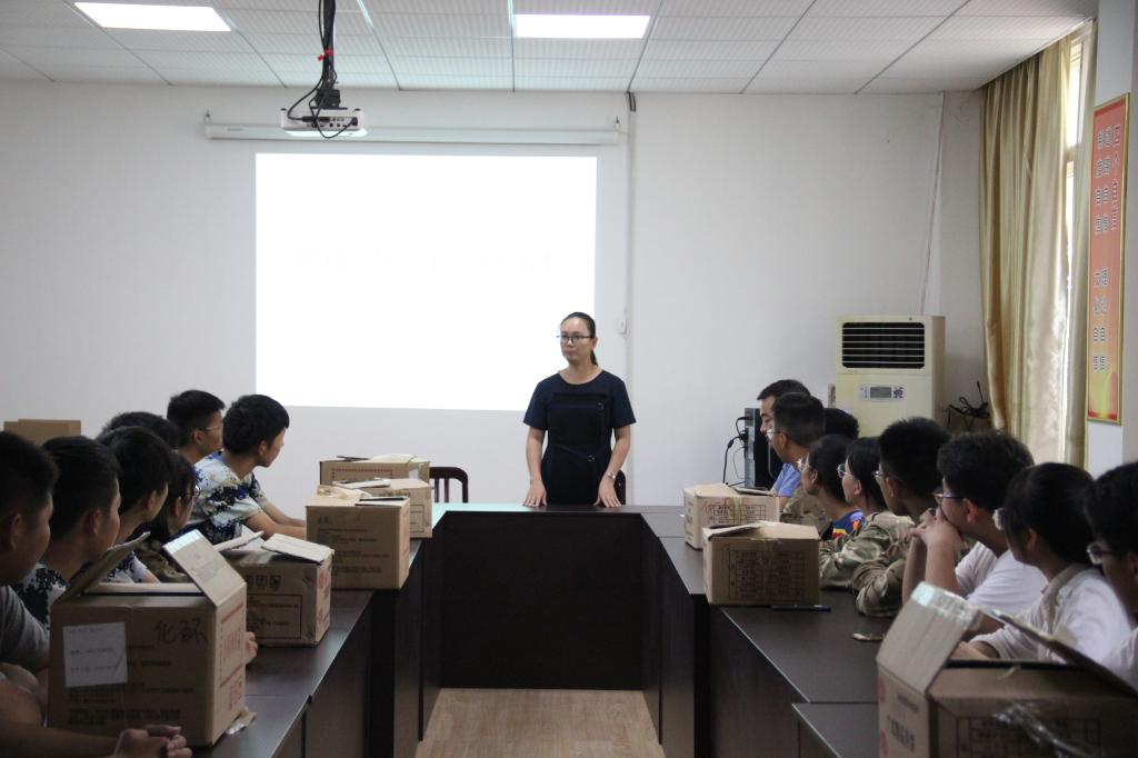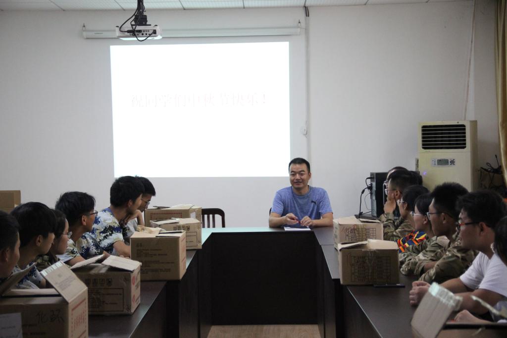 随后导学员为各班分发了月饼,新生代表王杰表示,第一次在外过中秋,第一次感觉月饼是这样的香甜,是因为包含了公司对新生的关怀和爱心。