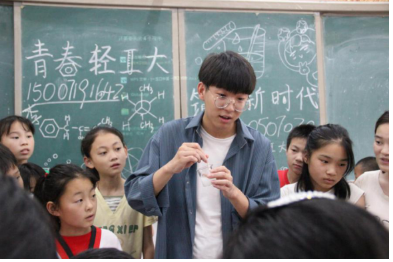 7月8日是“青梦”暑期社会实践队“三下乡”活动的第二天。这一天里,队员们给同学们安排了文化扩展课,户外活动课,音乐课,化学实验课四项活动,带给同学们了丰富多彩的一天。