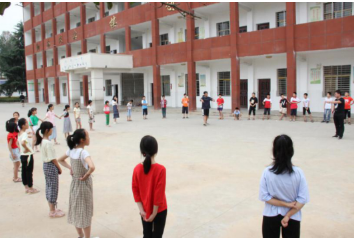 上午9点,实践队员们带领同学们共同进行了“解开手”游戏,并分组完成了羽毛球、乒乓球、篮球等户外活动,让同学在学习之余也能锻炼身体,拥有健康的体质。