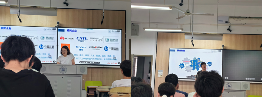 对于员工而言,专业就业前景是他们关注的重点,孙亚老师从材料化学专业方向和就业两个方面向同学们展示了本专业的光明前途,使同学们更加坚定了学习信心,并激励同学们:“星光不问赶路人,时光不负有心人”,勇往直前,追逐梦想!随后,肖江蓉老师从个人成长角度,告诉想转专业的同学要从“对本专业哪些地方不感兴趣、什么专业适合自己及转到不喜欢的专业后可否回头”三个灵魂问题出发,明确目标、做好规划,与老师保持密切联系勇于实现自我突破,成长为优秀榜样。怀着期待的心,同学听得十分仔细,讲解结束后,所有同学都是满满的收获,相信同学们对本专业有了更进一步的认识,从而选择更加适合自己成长的学习之路。(撰稿人:陈小莉 审稿人:李云雁)