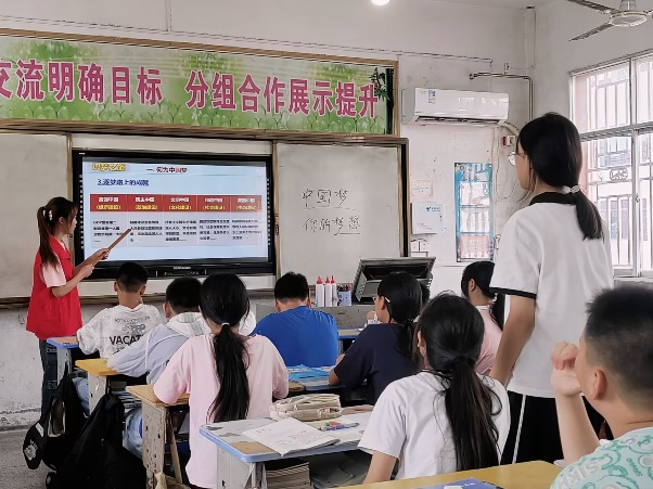 湖北省孝感市汉川田二河镇初级中学地处汉川市西部边陲重镇——田二河镇振兴路南端,现有员工近800名,其中小升初员工近300人。本次青梦志愿服务队志愿者们的支教活动对象,正是这一群小升初的孩子们。为帮助他们做好从小学到初中的课程衔接,引导其对初中开设的新课程:历史、思政等建立知识框架雏形,7月12日,志愿者为孩子们带来了一堂趣味红色梦想课程。