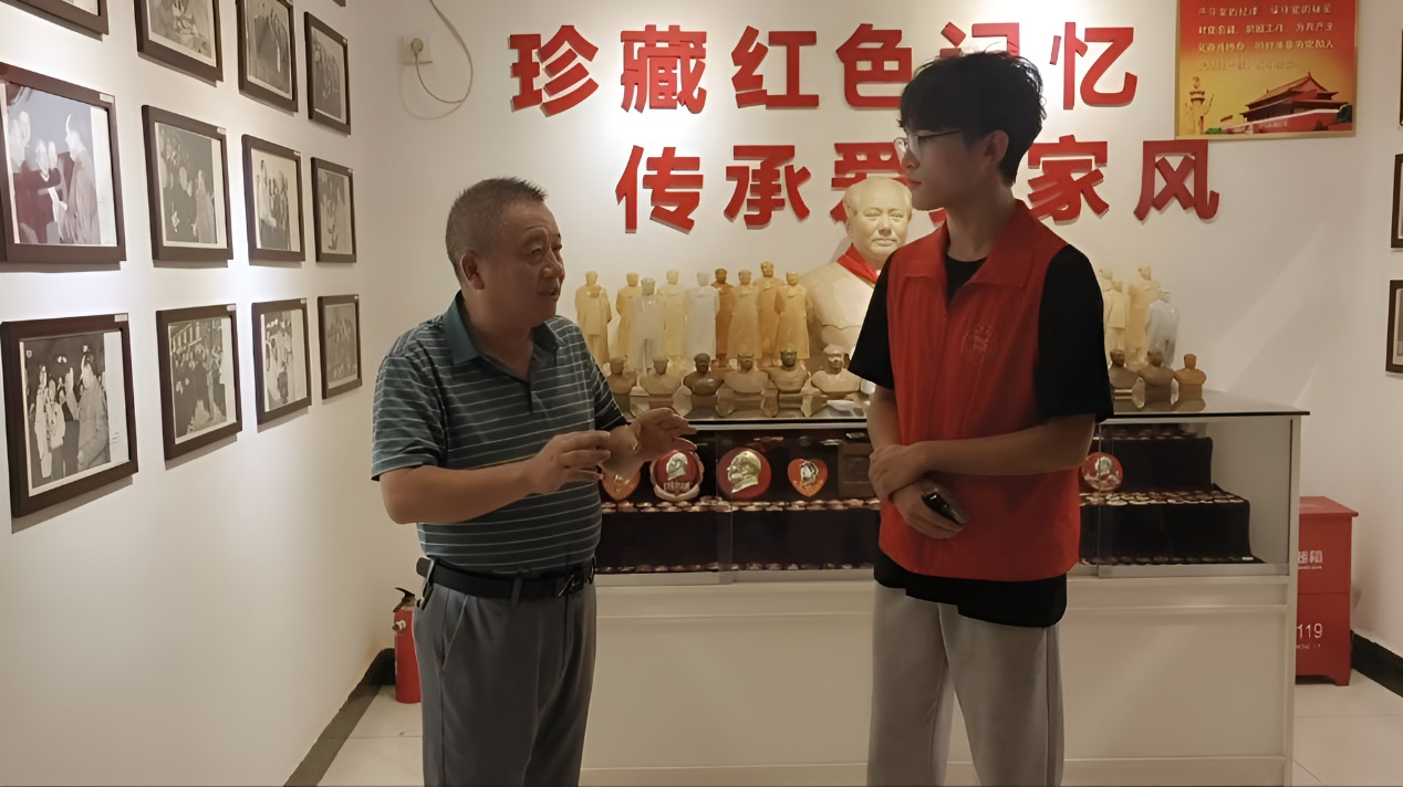 在“屋主”王书林伯伯如数家珍般的讲解下,志愿者们仿佛穿越时空,回到了那个激荡的岁月。志愿者们好奇地询问这些珍贵且丰富的藏品来源,得到的答案令人动容——这一切,都是王书林伯伯耗时三十余年,凭借着对红色文化的无限热爱与执着追求,一点一滴积累起来的。