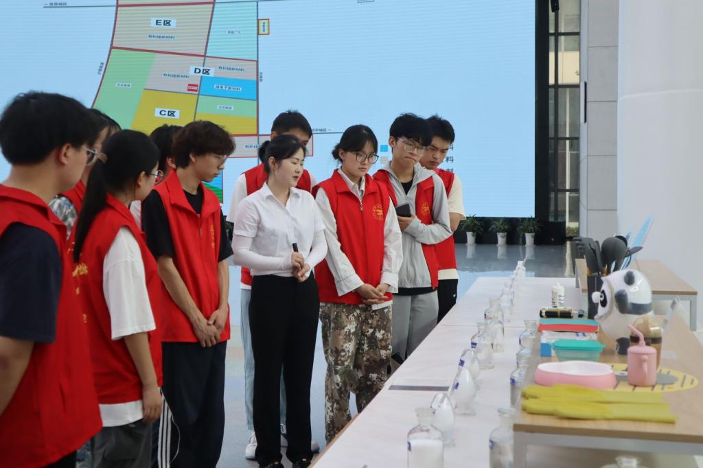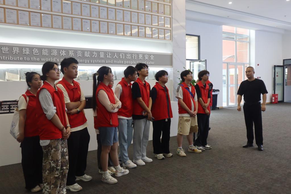 宜昌华麟钛新能源有限公司内,在龚总经理的带领下,志愿服务队了解到,宜昌华麟钛多年来致力于研究替代传统化石能源为主的能源系统,以电动化和智能化为核心,解决锂电池起火爆炸等致命问题的同时大幅度提升有限矿产资源的利用率,是一家为用户人身财产安全及世界环境安全保驾护航的新能源后起之秀企业。在龚总经理的介绍下,志愿者们对华麟钛公司生产的新能源电池产生了浓厚兴趣,与龚总经理展开多次问答互动。团队成员郭畅表示:“正如习近平总书记所说的科技创新引领高质量发展,作为新时代老员工,我们更应该勇于创新,用自己的智慧与才华创造更加美好的未来。”