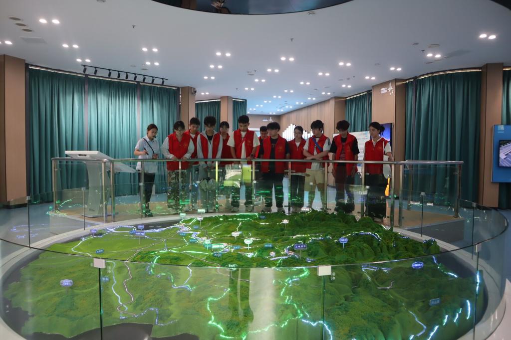 殷殷嘱托,荆楚回响。晌午时分,“化绿环乡”志愿服务队一行前往长江大保护教育基地开展实践调研。长江大保护教育基地展馆是集宣传、教育、接待和交流等功能为一体,展示宜昌推进长江大保护治理与成效的重要平台,也是展示宜昌城市形象和长江文化、推行公众参与环保的重要场所和科普教育的重要基地。在讲解员的带领下,志愿团队了解到,宜昌猇亭区化工企业牢记习近平总书记的嘱托,壮士断腕,率先打响了雷霆之战——沿江一公里内,134家化工企业“关改搬转治绿”;加快技术改造,高标准规划建设宜都、枝江两个化工园区,化工产业产值含金量、含新量、含绿量不断增加;取缔码头216个,减少港口岸线42公里,1971个长江、清江入河排污口全面完成检测和溯源,“碧水行动”取得了新成就;复绿长江岸线97.6公里、支流岸线196公里,全域复绿5.27万亩,生态廊道焕发出新的生机和光彩!
