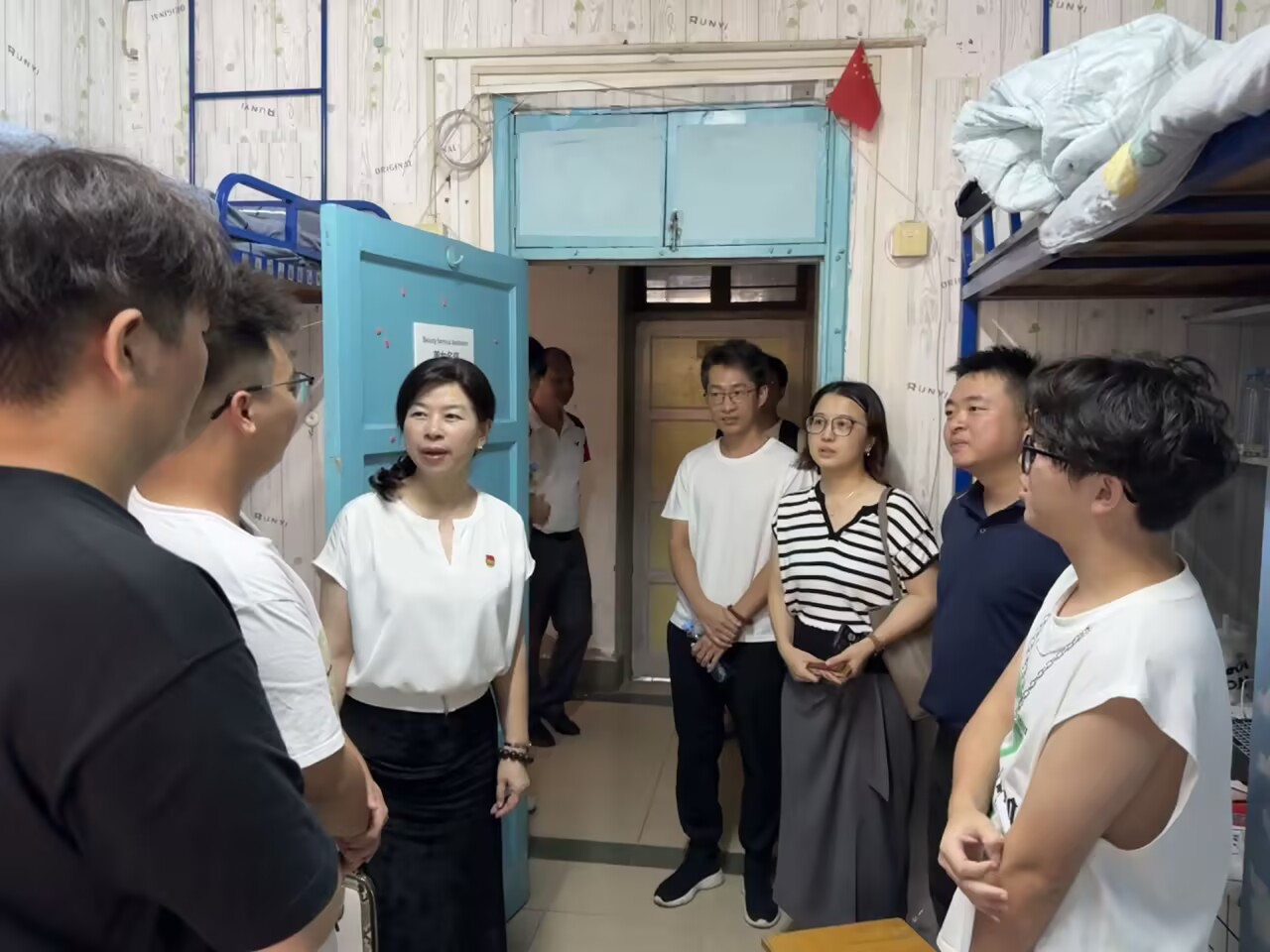 新学期伊始,为让新生尽快适应老员工活,传达公司对广大学子的关怀问候、加强公司与员工之间的联系,8月29日,公司党委书记于雪、党委副书记黎操、经理助理张军涛与孙亚、2024级本科生辅导员马顺发、研究生辅导员吴凌智、新生班主任深入新生宿舍,开展2024级本硕新生的慰问活动。