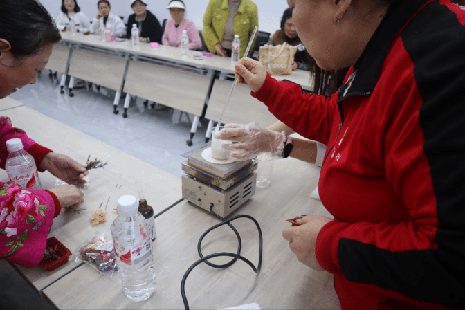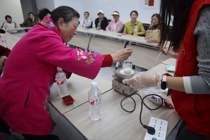 活动伊始,志愿者引导到场老人有序就座,并逐一摆放好皂基、精油、模具等手工制作材料。志愿者以“手工肥皂制作——清洁与健康的化学之旅”为主题引入,明确活动核心主旨。随后围绕肥皂的历史起源、去污原理及环保价值展开详细讲解,让老人直观了解生活中的化学知识。