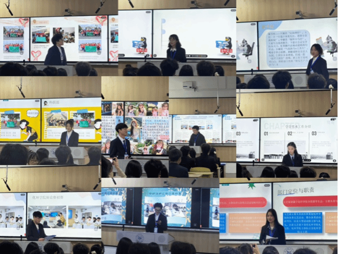 会议遵循六项议程逐步推进。首先进行议程宣讲,阐述了本次会议的目标。随后进入部门展示环节,各部长借助PPT介绍了部门架构、人员分工及特色活动,并提出了未来发展规划。随后,志愿者代表上台发言,其在发言中谈及在工作中深刻体会到奉献的价值,并对学长学姐及老师在工作期间给予的关心表示感谢。之后,部长代表结合岗位实践分享工作经验,内容涵盖任务分配、进度把控等关键环节。此后,主席团代表对部门工作进行总结,并对未来工作提出更高要求。