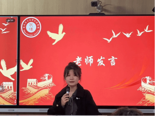 李妍老师发表致辞。她向新学员表示祝贺,并对三个功能型团支部提出三点期望:筑牢思想理论“主课堂”,搭建实践担当“练兵场”,发挥先锋示范引领作用。她勉励全体学员锤炼本领、涵养作风,努力成长为政治坚定、能力突出的青年政治骨干,在中国式现代化建设中践行“请党放心,强国有我”的青春誓言。
